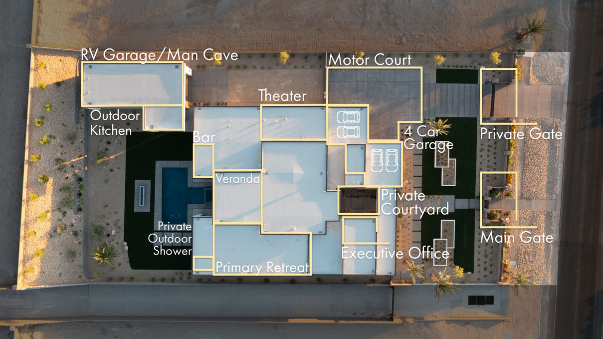 The 6370 is a single-story modern masterpiece designed for effortless living. With clean lines, sleek intricacies, and set on an oversized lot, the 6 series boasts luxury living and privacy. With 5 bedrooms, 7 bathrooms, independent RV garage, game room/bar, movie room, walk-in wine cooler, courtyard entry, kids wing, and a spacious master, this modern desert compound has ample living and entertainment amenities.