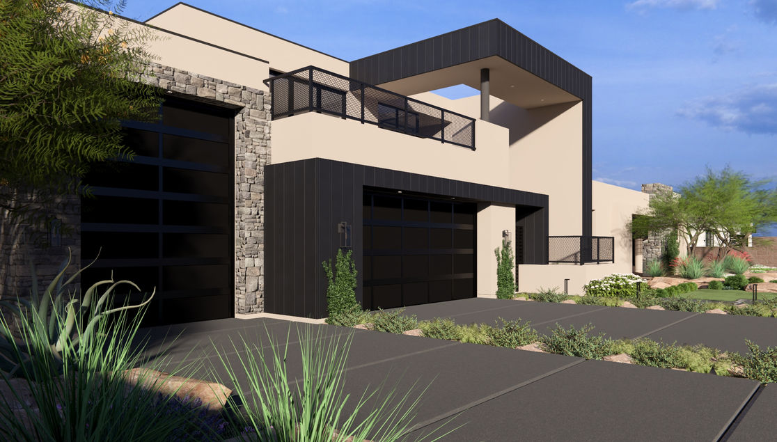 Located within the brand-new gated community of The Estates at Lone Mountain, this half-acre home comes fully turnkey. In this exclusive nine-lot community, The Spire plan offers a thoughtfully designed two-story layout with 4 bedrooms, 4.5 baths, an upstairs game room, and an attached RV garage. The home's modern exterior showcases metal-clad and natural stone accents, while the interior embraces a refined industrial design that balances warmth with a touch of edge. Matte black and wood cabinetry, natural stone cladding, and warm wood floors are complemented by metal elements throughout the home. Floor-to-ceiling windows fill the space with natural light and frame stunning views of Lone Mountain. This home features a heated pool and spa, a fully landscaped lot, a private entry courtyard, an outdoor shower, minimal HOA restrictions, Control4 smart home technology, and an integrated sound and security system—offering a seamless blend of sophistication and comfort